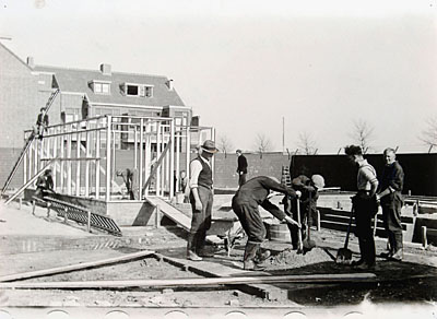 Bouwen van een clubhuis door werklozen op het …