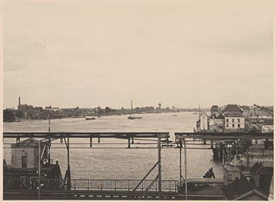 Gezicht vanaf de verkeersbrug op de Oude Maas naar het …