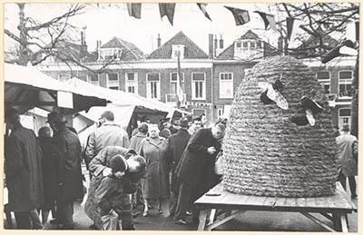 Bijenmarkt op het Beverwijcksplein. Op de achtergrond de …