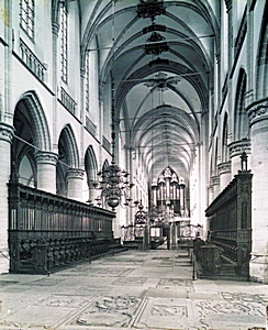 Het interieur, middenschip van de Grote Kerk met nadruk …