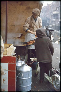 Vismarkt op de Botermarkt. Rechts de Voorstraatshaven en …