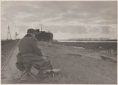 Militair tussen de bruggen over het Hollandsch Diep.