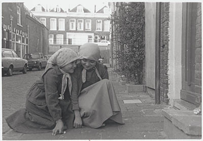 Twee knikkerende meisjes in het Matena's Pad, gezien in …