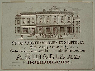 Adreskaart van steenhouwerij A. Singels Azn.