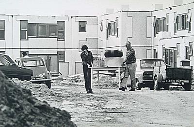 Mensen verhuizen huisraad naar hun nieuwe woning in …