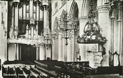 Gezicht op Dordrecht, Grote Kerk en Hooikade.