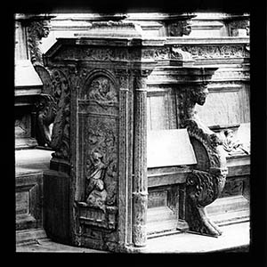 Koorbanken in de Grote Kerk.