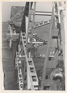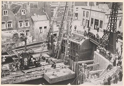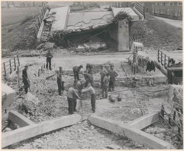 Oorlogsschade aan de verkeersbrug Moerdijk.