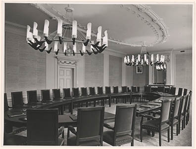 Interieur van de vergaderzaal van de Kamer van Koophandel …