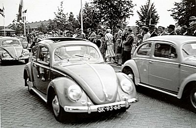 Rij Volkswagen Kevers op de Brouwersdijk, waarschijnlijk …