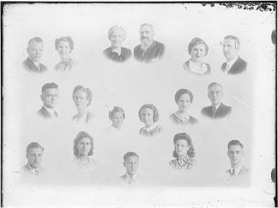 Collage van 17 portretten van leden van de familie Van …