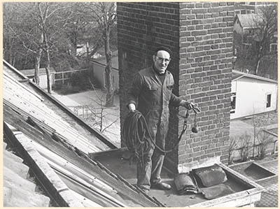 Schoorsteenveger Pietro Martinetti op het dak van het …