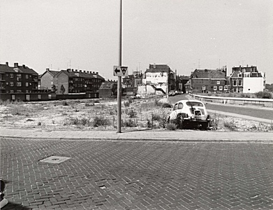 Merwekade met braak liggend terrein waar de gasfabriek …