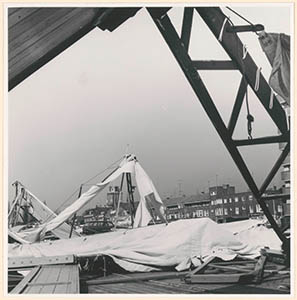 De stormschade aangericht aan de Expo-hallen op de …