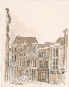 Tekening door Jan Hensema van de Prinsenstraat vanaf de …