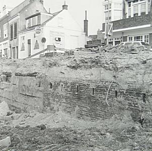 Resten van de stadsmuur in de drooggelegde Spuihaven …