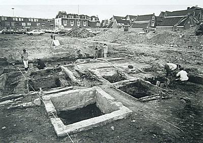 Archeologische opgraving op de Drievriendenhof met op de …