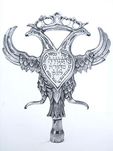 Detail van de koperen kandelaar (twee koppige vogel) van …