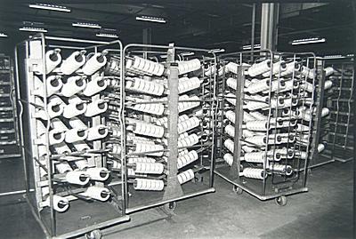 Kooien met klossen gesponnen vezels op de spinafdeling …