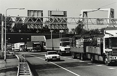 File op de A-16 bij de Drechttunnel