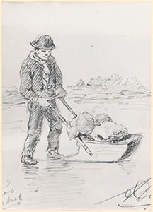 Tekening van vervoer per slede door Frans Lebret, ter …