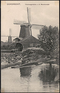 De houtzaagmolens De Duinen (voorgrond) en De Windhond …