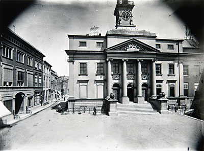 Het stadhuis op het Stadhuisplein. Links het …