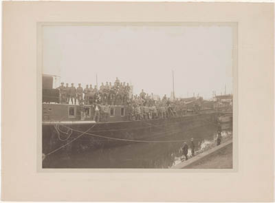 Pontonniers op het logiesschip van het Bruggendepot voor …