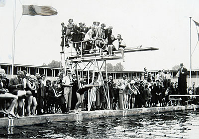 Zwemwedstrijden in het Wantijbad. De man met de …