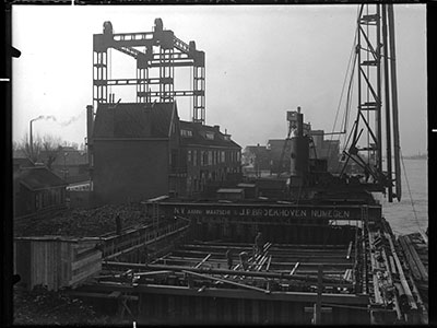 Bouw van de Zwijndrechtse brug, gezien naar de Dokweg en …