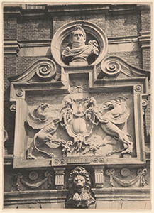 Het stedelijk wapen met griffioenen en erboven de …
