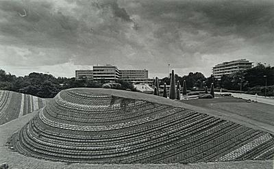 Stenen kunstwerk en fontein bij het Refaja-ziekenhuis aan …