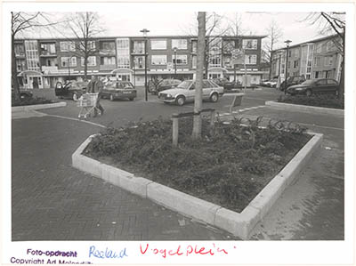 Winkels op het Vogelplein, rechts een flatgebouw in de …