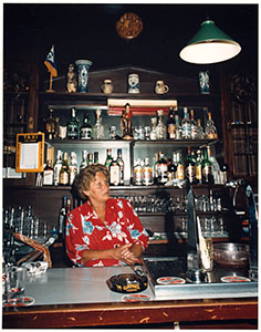 Wil van Son, zittend achter de tap, kasteleinse in café …