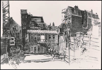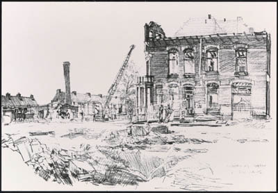 Tekening door Led Brand van de sloop van het abattoir aan …