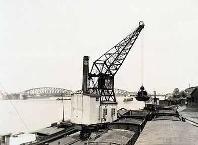 Merwekade met hijskraan en daarachter de installatie voor …