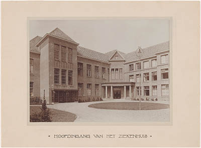 De hoofdingang van het Gast- of Ziekenhuis (thans 1966); …