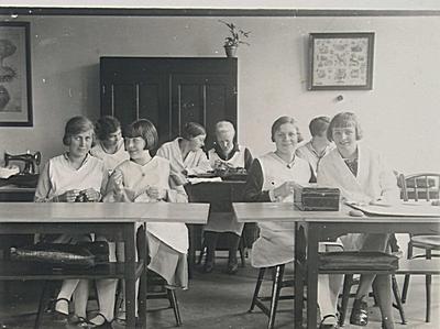 Leerlingen tijdens naailessen van de Industrie- en …