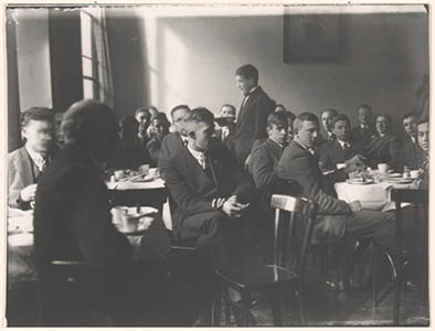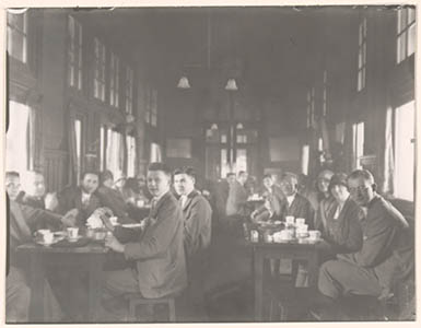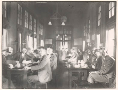 Een gezelschap op excursie, in de kantine van de fa. Penn …