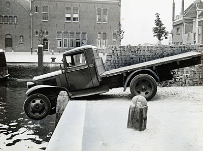 Vrachtwagen op de Korte Kalkhaven valt net niet de haven …