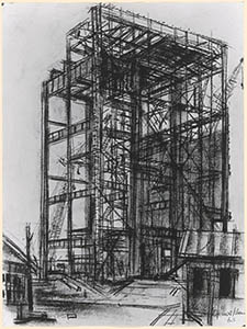 Tekening door Gerrit Kloens van de bouw van de …