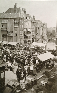Markt op het Scheffersplein omstreeks 1905. Rechts achter …