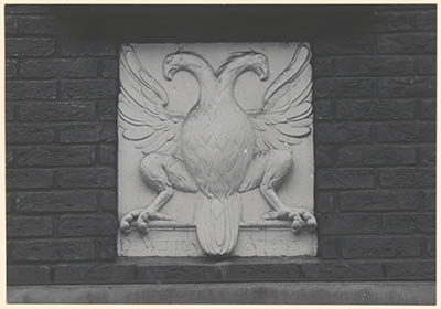 Gevelsteen met dubbele adelaar en onderschrift De Witten …