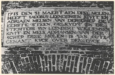 Gevelsteen boven de deuren van molen Kijck over den Dijck …