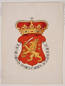Nieuwe Haven 39; glasschildering wapen van Holland
