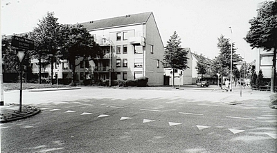 Flatgebouwen aan de Talmaweg met de hoek van de Groen van …