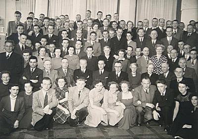Groepsportret van het personeel van de Raad van Arbeid en …