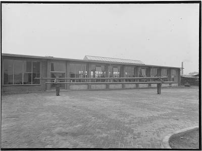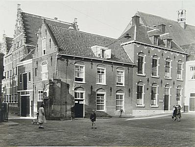 Hof met links de Statenschool in de Hofstraat en op de …