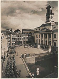 Afscheidsdefilé van de Pontonniers voor het stadhuis.