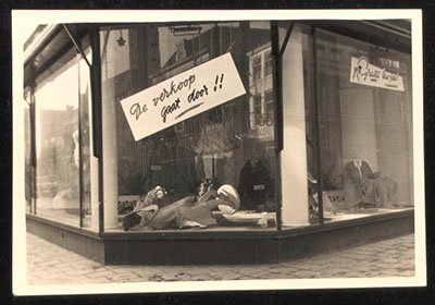 Tijdens de watersnood vernielde etalage van Kofa Linders …